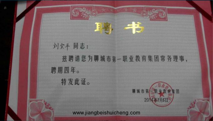 聊之旅國際旅行社榮獲聊城市職業教育集團常務理事單位,劉寶平董事長榮獲聊城市第一職業教育集團常務理事。