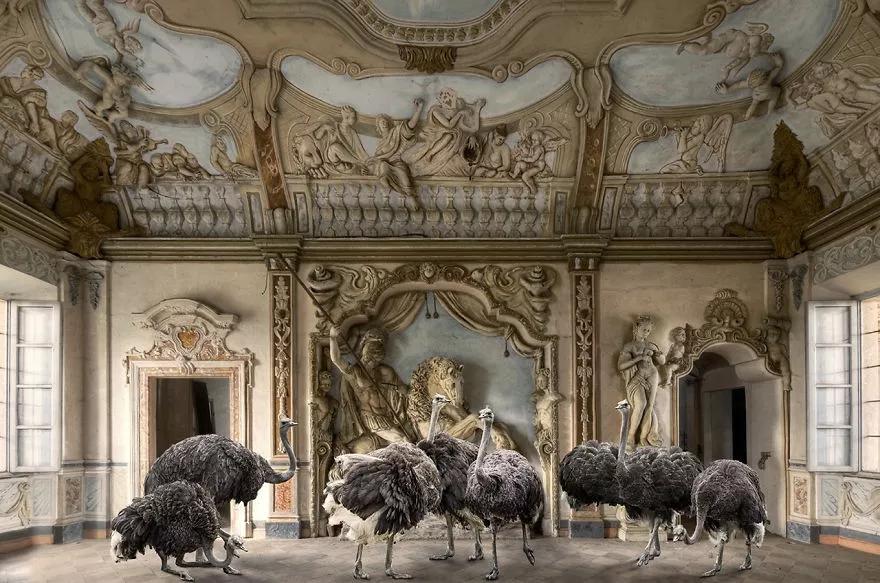 鴕鳥集體表演室內芭蕾……