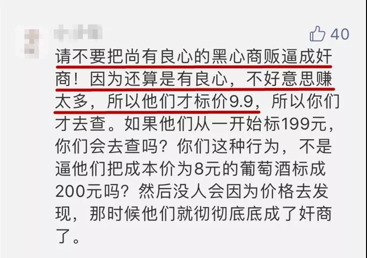在文章下面五花八門的留言中,我看到很多人對這款低價酒品質的質疑和抨擊,但卻看到點贊最高的一條留言內容竟然是: