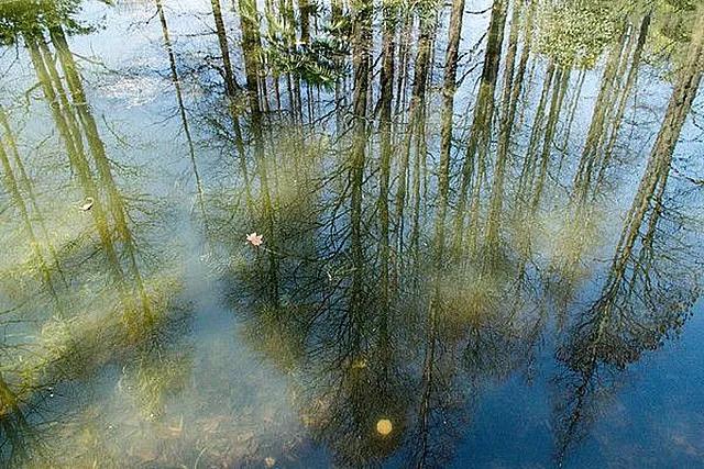 這張構圖方法,經常被運用于倒影攝影中。尋找平靜的水面,以表現倒影為主;同時,又在畫面中保留部分地面景物作為陪襯。