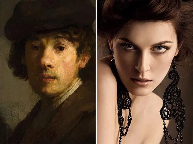 (左)倫勃朗肖像畫;(右)倫勃朗式布光人像