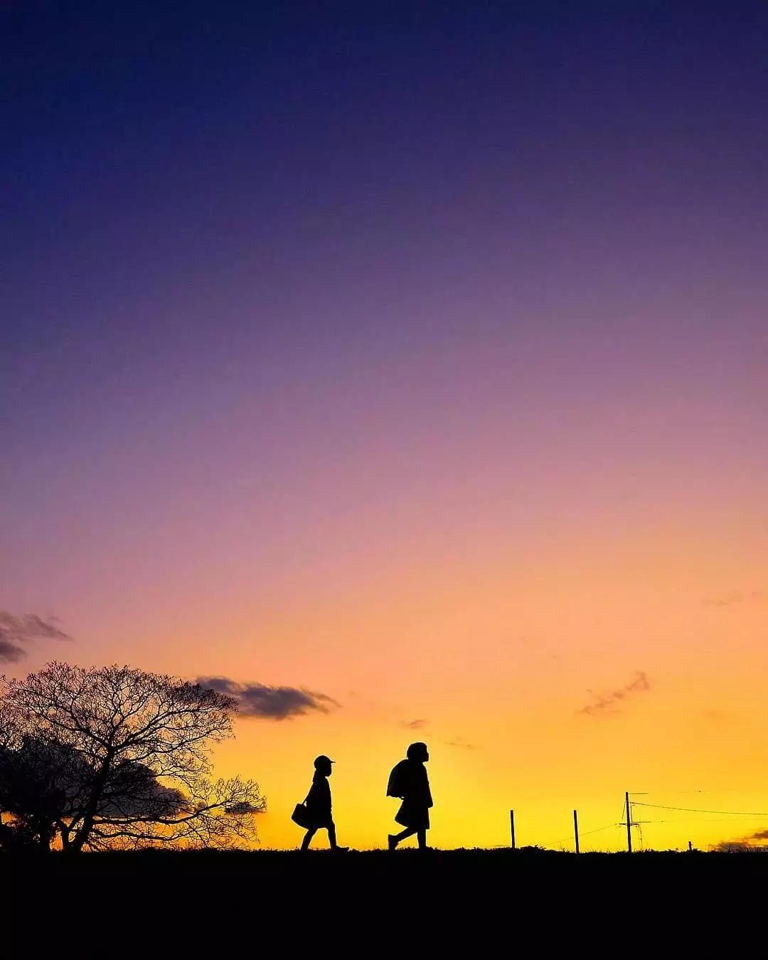 在夢幻般的風景下,孩子的背影或者剪影成為了畫面的視覺焦點,這是梶原紀之作品的最大特點。