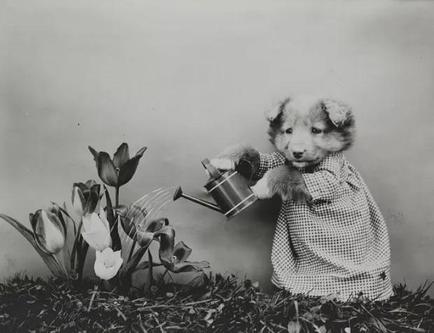在攝影還遠未普及的年代,能把鏡頭移向身邊的寵物,拍攝出這樣有創意的寵物攝影,真的簡直不能更棒。