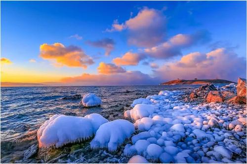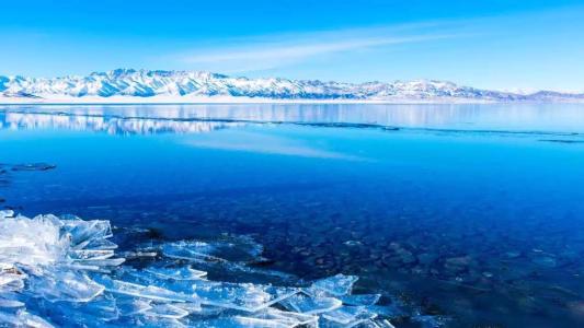 沿湖行走,岸邊的石頭像是羊脂玉一般,有的圓潤,有的光滑,大小不一,隨處可見的冰筍、冰柱形態(tài)各異、錯落有致、晶瑩剔透,賽里木湖冬季冰層厚度可達將近一米,只要不走到冰面邊緣安全都是沒有問題的,賽里木湖湖水純凈湛藍,清澈的可以看到十多米水下的石頭,走在冰面上,就像走在透明的玻璃板上一樣,是一種難得的奇妙體驗;