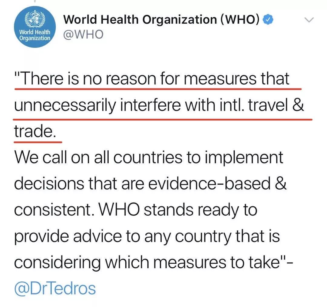他強(qiáng)調(diào),目前各國“沒有任何理由采取不必要的限制旅游和貿(mào)易的措施”。