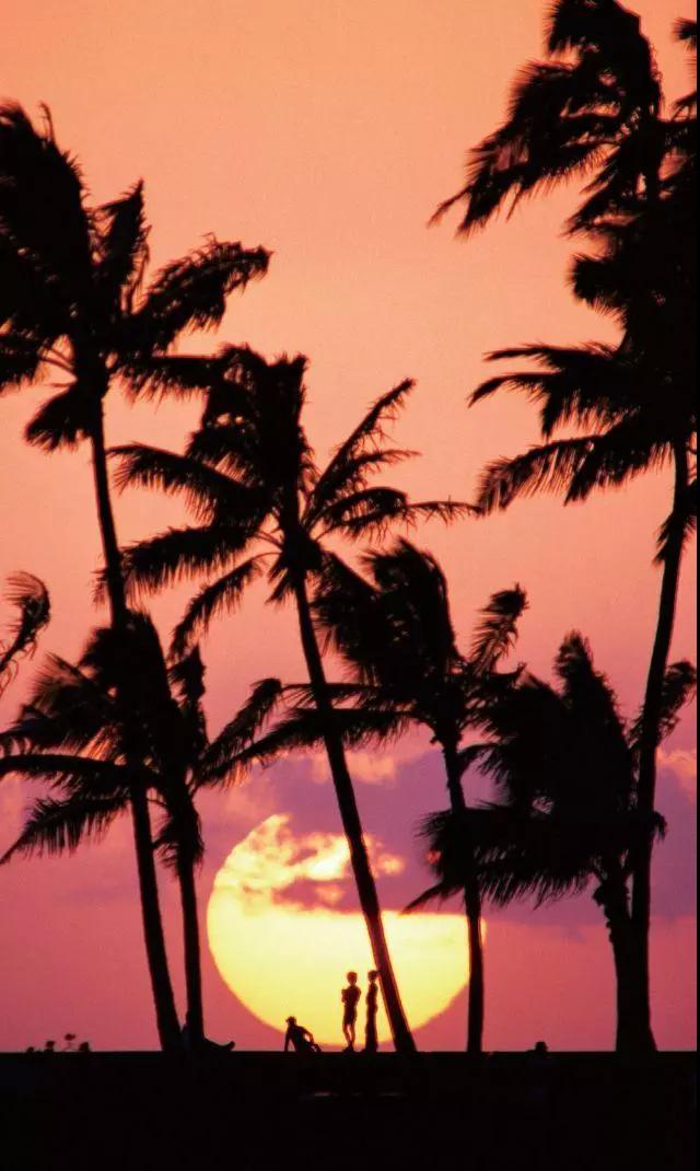 在逆光下,風中搖曳的樹葉呈剪影狀,似雄鷹在空中展翅飛翔。地平線上大大的太陽十分明亮、耀眼,而 3 個孩子不知道什么 時候悄悄地走了進來,在太陽的前方展現 出他們漂亮的身體輪廓。由于攝影師采用了獨特的拍攝視角,因而這幅畫面能給人 留下十分深刻的印象。