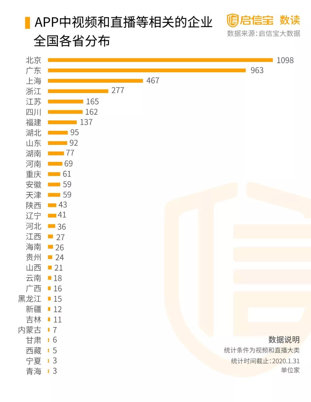 根據啟信寶數據統計,全國共有4132家有視頻業務的企業,其中北京、廣東、上海分別數量為前三,可能受益會相對較大。
