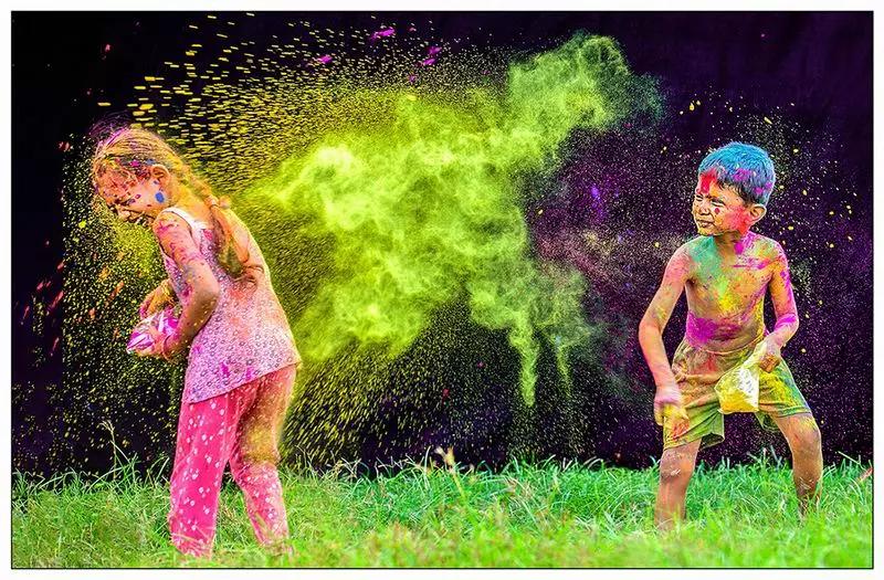 照片,也是一種動(dòng)態(tài)的抓拍,像尼泊爾的撒紅節(jié),云南的潑水節(jié),基本都是這些動(dòng)感題材,所以畫面有很強(qiáng)的沖擊力跟情緒表現(xiàn),如果這個(gè)照片做成黑白其實(shí)也沒有問題的。