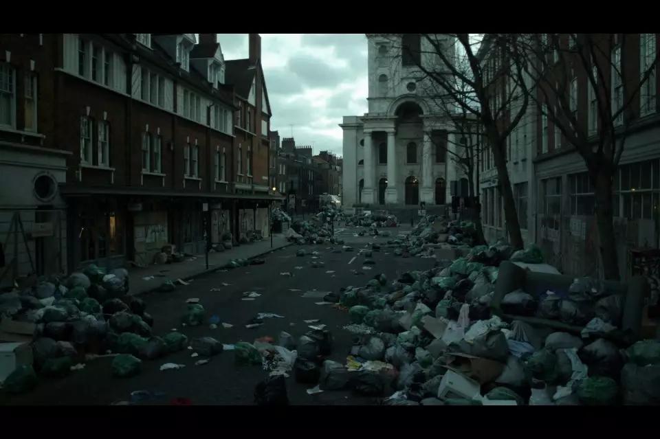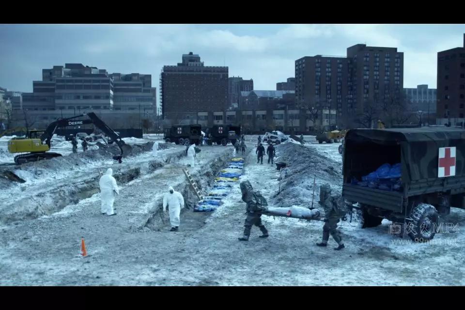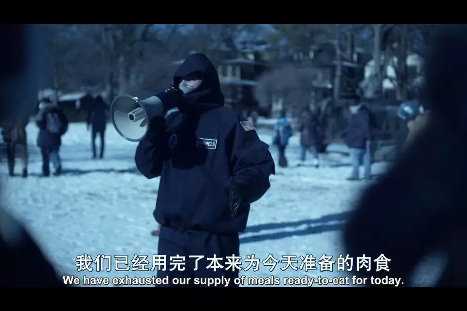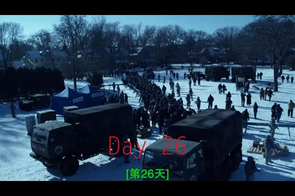 影片中疫情持續(xù)下去的情況是:在26天里,經濟回到配給制,人們?yōu)榱祟I政府配給的食物排起長長的隊伍。