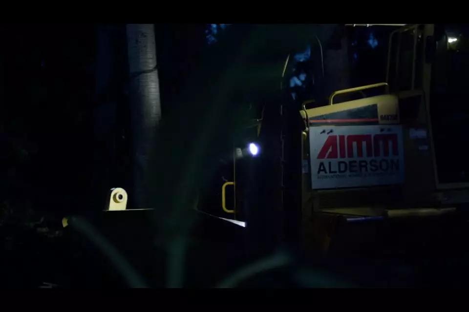 一輛重型推土機推倒了叢林里的樹木(注意LOGO,一號病人簽的文件,和空無一人的寫字樓里都出現了這個LOGO。暗示人類公司的開發(fā)活動對大自然的侵犯,最終導致了自身的災難)