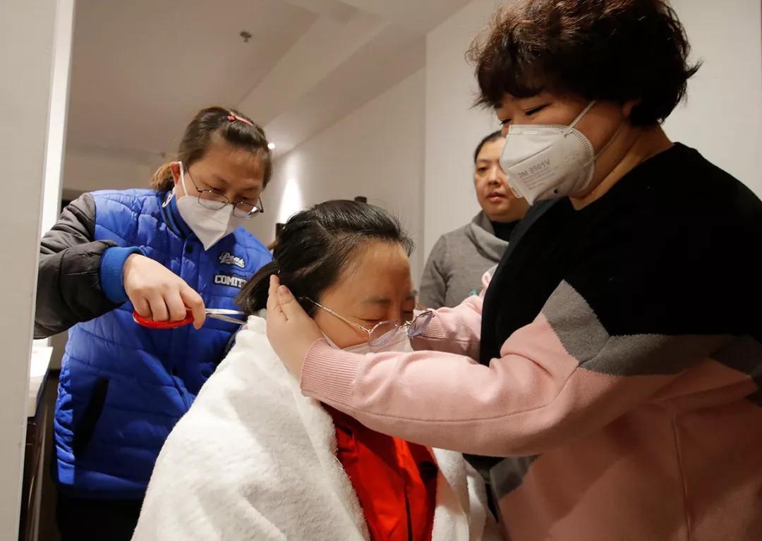 北京醫療隊到達后的第二天,由于就要穿著防護服進行工作,宣武醫院的一位護士剪掉了自己的長發。