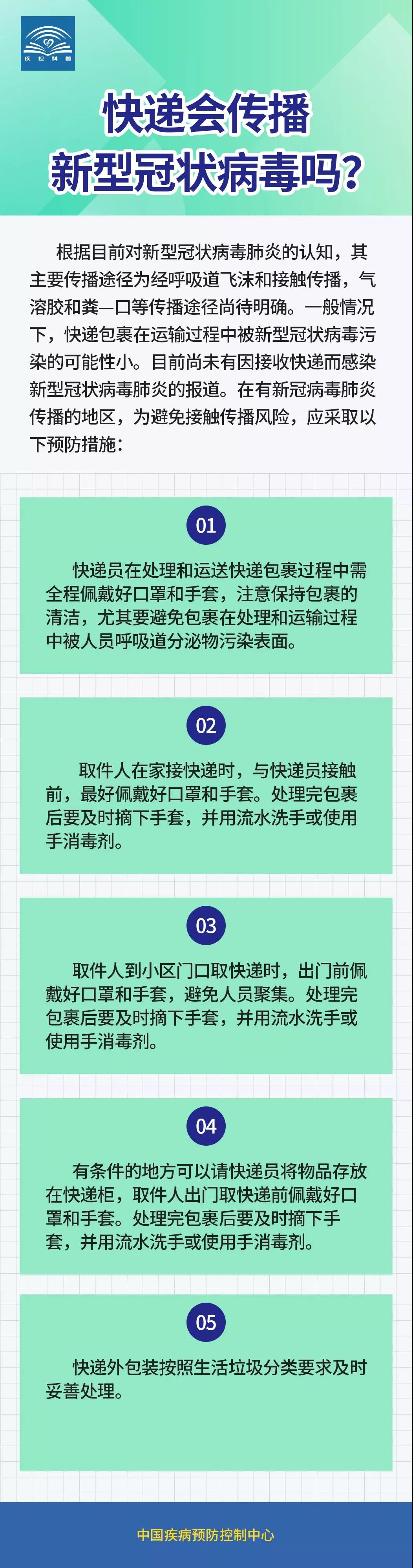 疫情之下,網(wǎng)上購(gòu)物成為很多人獲取生活物資的首選方式,但也引發(fā)了一些擔(dān)憂(yōu),快遞會(huì)傳播新型冠狀病毒嗎?我們?cè)撊绾胃玫乇Wo(hù)自己?中國(guó)疾控中心提示,快遞包裹在運(yùn)輸過(guò)程中被新型冠狀病毒污染的可能性小,目前尚未有因接收快遞而感染新冠肺炎的報(bào)道。