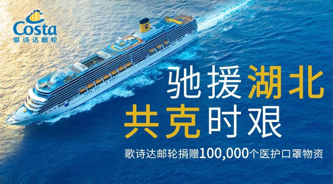 2月1日,歌詩達郵輪宣布捐贈100,000只高級別防護口罩,馳援疫情的防控工作;