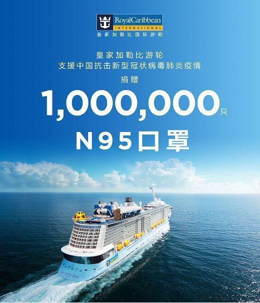 2月15日,皇家加勒比郵輪宣布捐贈1,000,000只 N95防護口罩,供政府分發到受疫情影響的地區;