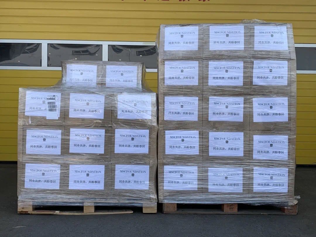 2月23日,MSC 地中海郵輪基金會采購的首批醫療物資100,000只歐標醫用口罩抵達北京,交由中國交通運輸部馳援湖北。