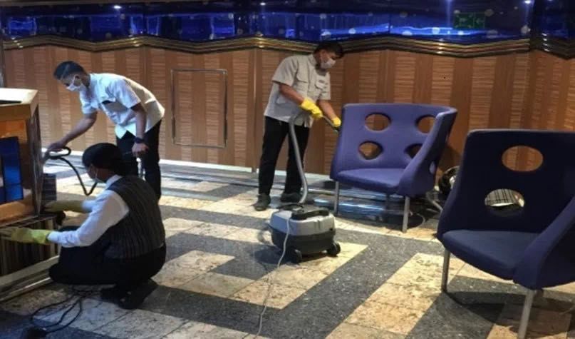 其實大部分都停靠在港口待命,一邊按照世界衛生組織的標準加強船上的消毒清潔工作,一邊優化船上的產品及服務。