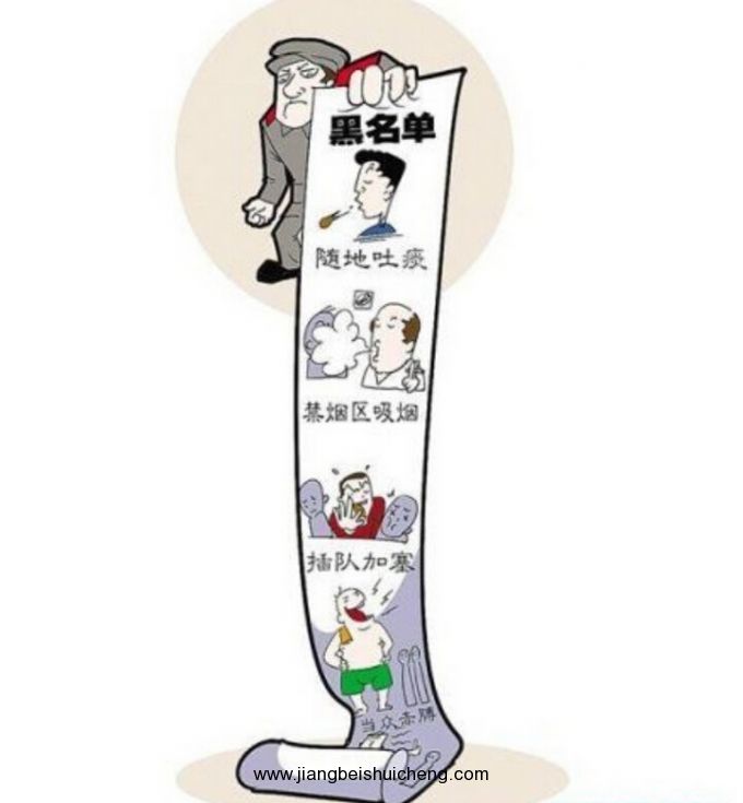 1.隨處拋丟垃圾、廢棄物,隨地吐痰、擤鼻涕、吐口香糖,上廁所不沖水,不講衛生留臟跡;