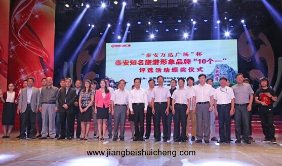 9月12日,“泰安萬達廣場杯”泰安知名旅游形象品牌“10個一”評選活動頒獎儀式在泰安市電視臺演播大廳舉行。頒獎典禮上,最具震撼力的旅游宣傳口號、游客最愛傳唱的旅游歌曲、游客最喜愛的旅游微電影等10個獎項全部誕生。