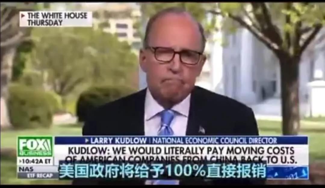 據(jù)“環(huán)球時報”綜合路透社、彭博社的報道,美國白宮的國家經(jīng)濟委員會主任拉里·庫德洛(Larry Kudlow)建議,通過“報銷全部費用”的方式,吸引美國企業(yè)從中國遷回美國。