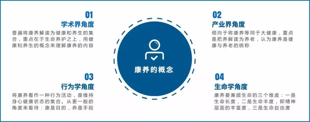 什么是康養(yǎng)?目前還沒(méi)有一個(gè)明確且被廣泛接受的界定。以下從學(xué)術(shù)界、產(chǎn)業(yè)界、行為學(xué)和生命學(xué)四個(gè)角度來(lái)說(shuō)明。