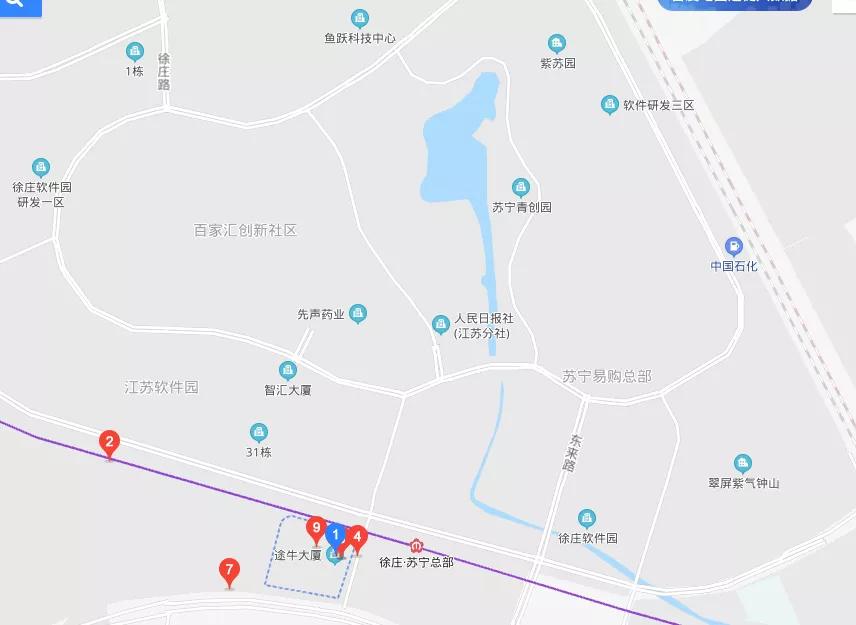 南京的途牛總部,毗鄰蘇寧總部,以及蘇寧易購總部和蘇寧青創(chuàng)園。
