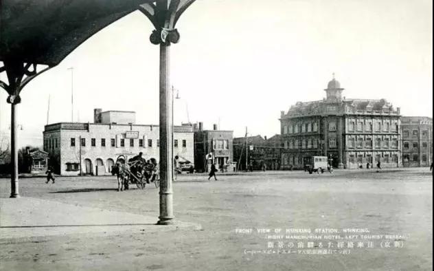 1935年是的新京站(長春站)前東側,左一二層建筑即為日本國際觀光局新京支社