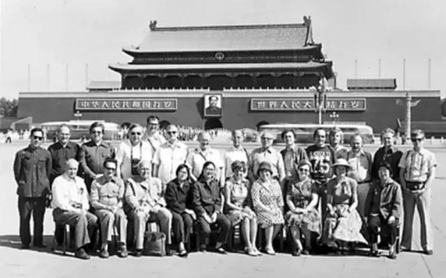 1975年國旅總社接待聯邦德國施瓦本國際旅行團,在北京天安門前留念