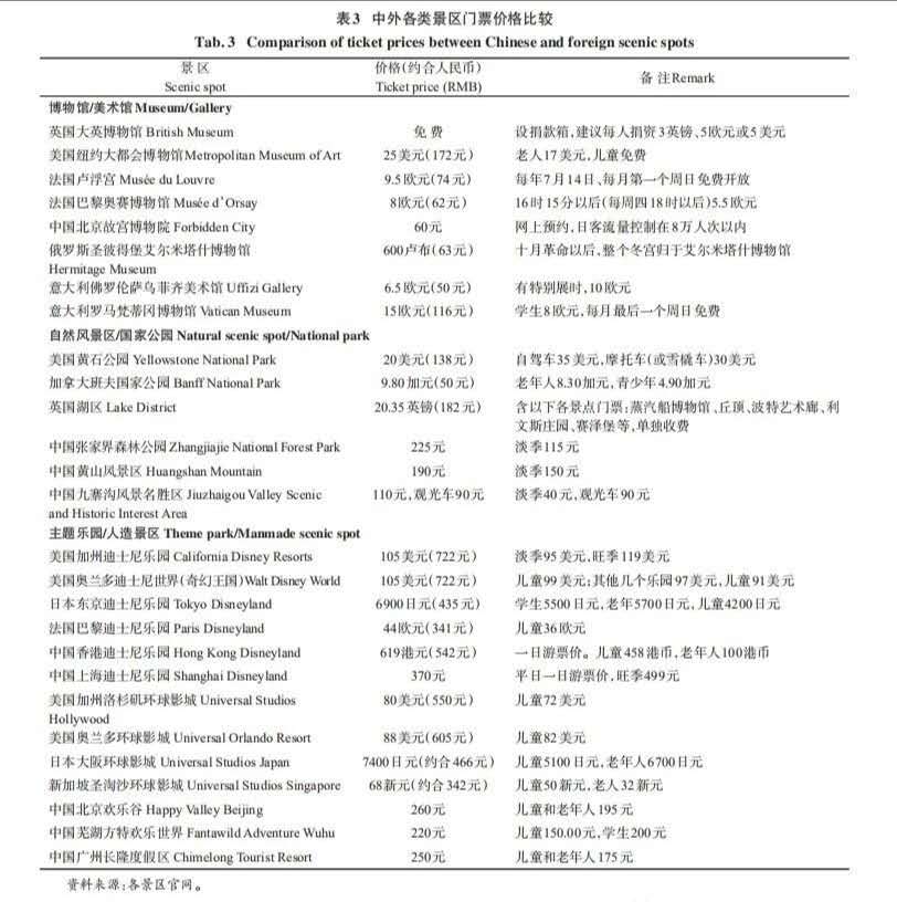(1)景區(qū)門票價格總體而言并不算太高,與國際上同類景區(qū)相比,基本持平;