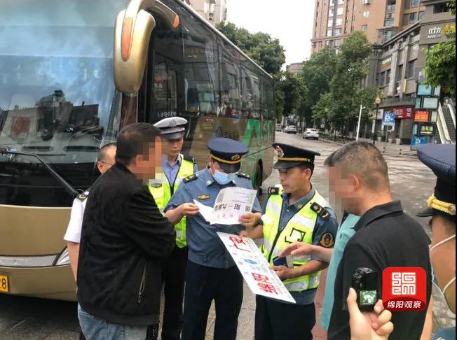 執(zhí)法人員在檢查開往崇州的大巴車時(shí),