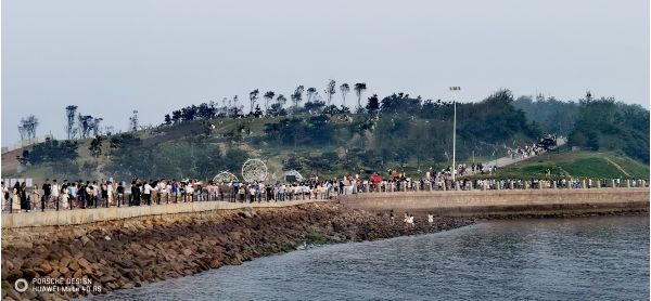 黃島雖然不是一個島,但他和青島市區的位置關系好比一個'c'字母的兩個端點,以前去黃島,要么做輪渡,要么環膠州灣繞個大圈倆小時,現在好了,修了海底隧道,坐隧道公交嗖的一下就過去了,出隧道口在跑一段就是金沙灘了,沙子極細腳感極好。