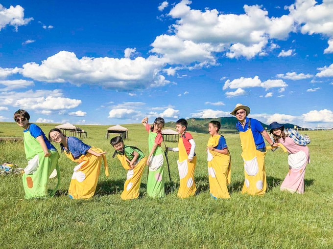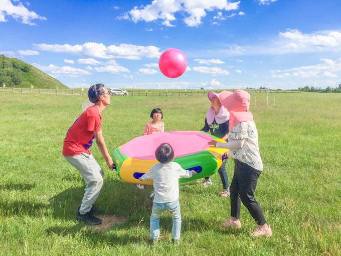 四方綠茵場,看不到邊際,望不到觀眾席;趣味草原運(yùn)動會,滑沙、拔河、袋鼠跳、鴻運(yùn)彩球、碰碰球……我沒想到,在沒有圍欄的草原踢球是這樣的酣暢淋漓;我沒有想到,在草原上放風(fēng)箏只能感嘆線不夠長;我沒想到,在草原還能玩這么多游樂項目。這里簡直就是一個草原迪士尼,兒童的天堂樂園,甚至連大人也能在這里找回童年的樂趣。