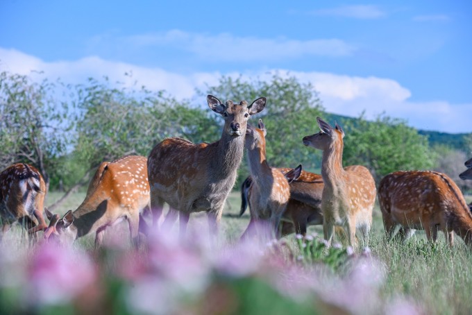 從小到大,最喜歡看的電視節(jié)目是動物世界,最喜歡去的地方是動物園,似乎孩子都不能抵擋動物帶來的喜悅。長大一些,慢慢不滿足于圍墻里的動物,希望能夠去野生動物園,感受大自然動物的天性。但也僅限于坐在觀光車上,在工作人員的指導(dǎo)下,小心翼翼地觸摸他們。我從來沒有想過,我可以和他們一起奔跑在蒼茫的草原上。零距離接觸草原精靈梅花鹿,和當(dāng)?shù)厝艘黄饑恫菰螅婉R兒輕聲耳語,懷抱小羊羔,時不時還能看到雄鷹展翅高飛追捕獵物的場面…