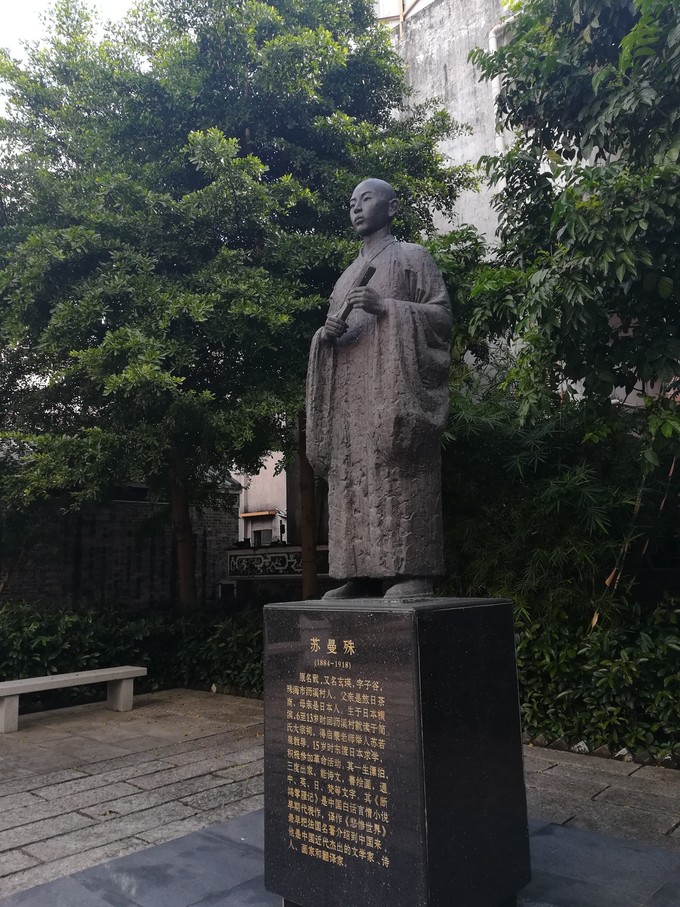 碑廊盡頭是蘇曼殊先生的塑像,而省保碑正在塑像前方