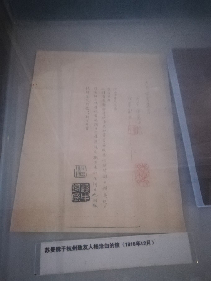 雕像左邊是蘇曼殊的紀(jì)念館,陳列了幾幅蘇曼殊書畫及一些資料的復(fù)制品。