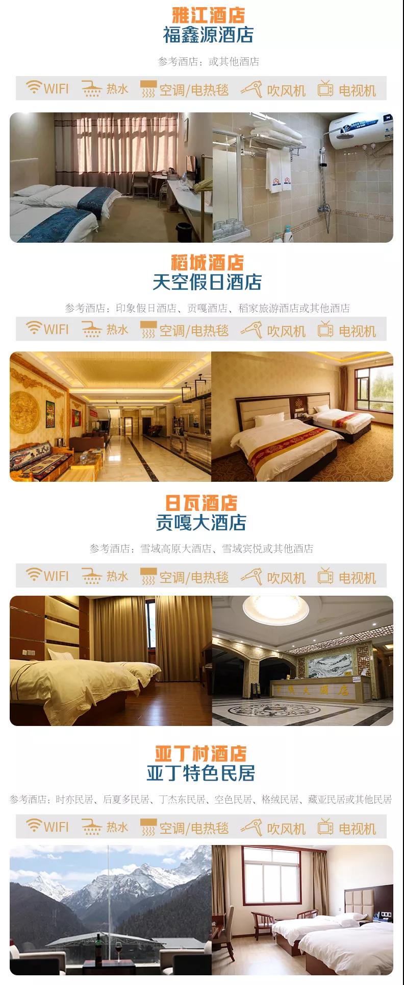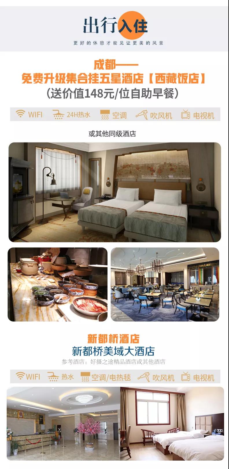 3、住宿:行程所列10晚住宿費,免費升級一晚出行前成都集合掛五酒店(西藏飯店,含148元自助早餐);因沿途條件有限,如酒店設施達不到您的期望,請您諒解。