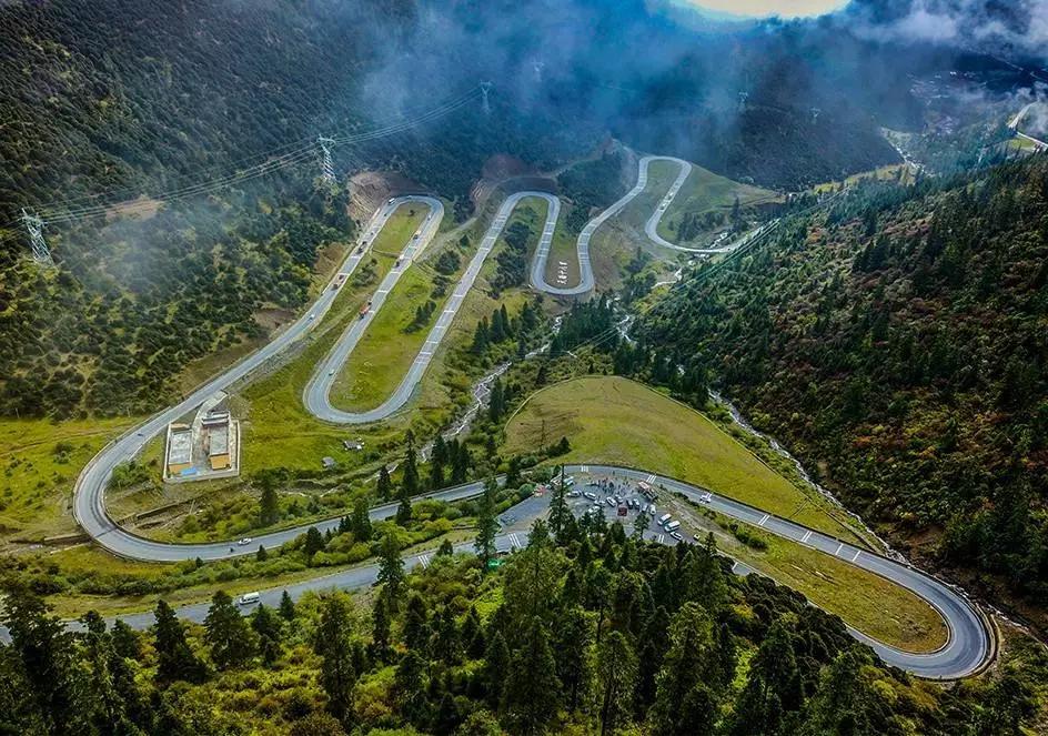 穿越剪子彎山遂道,駛過美麗的卡子拉山(埡口海拔4718米),途中經過【天路十八彎】,俯瞰盤旋而上的盤山公路,曲折而急促的胳膊肘彎,有一種震撼的曲線美!