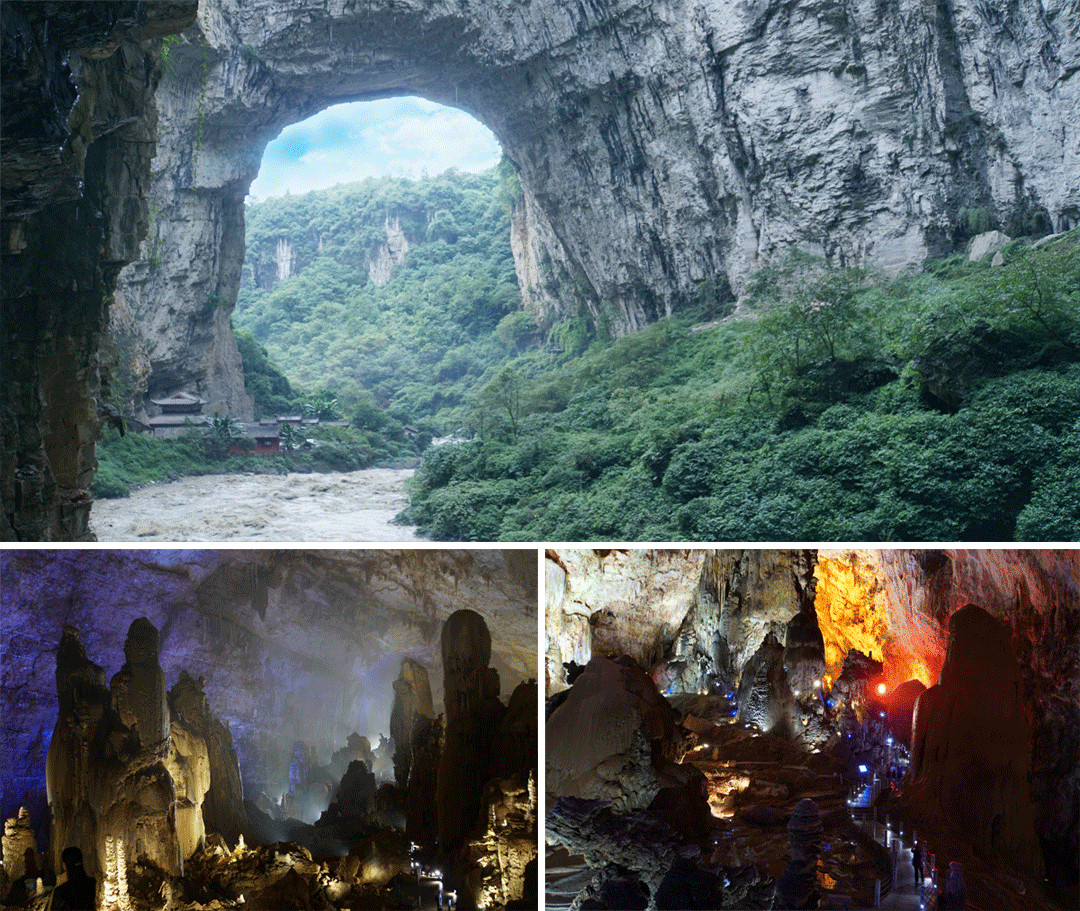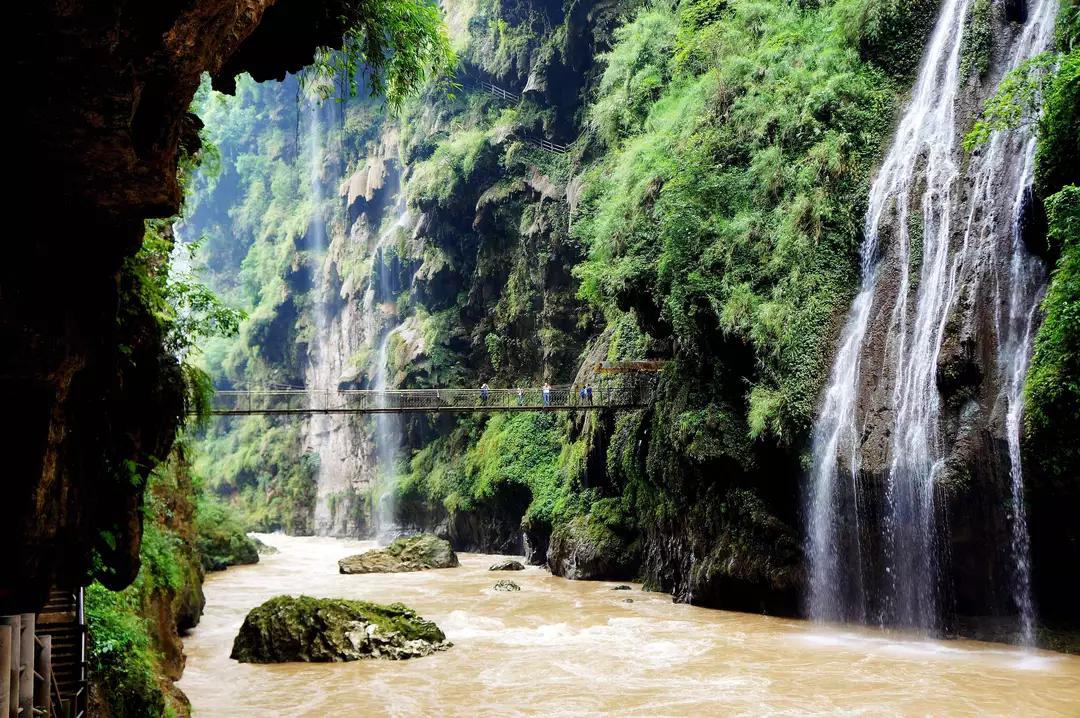 下午,接著游覽距織金洞僅2公里的【織金大峽谷】。峽谷內(nèi)有保護完好的峽谷、天窗、天坑、暗河、絕壁等地質(zhì)遺跡,特別是高大的天生橋更是一絕,“水上水、洞上洞、橋上橋、天外天”等景觀被地質(zhì)學家稱為“世界一流的喀斯特景觀”,可沿懸空棧道或是乘船游覽。