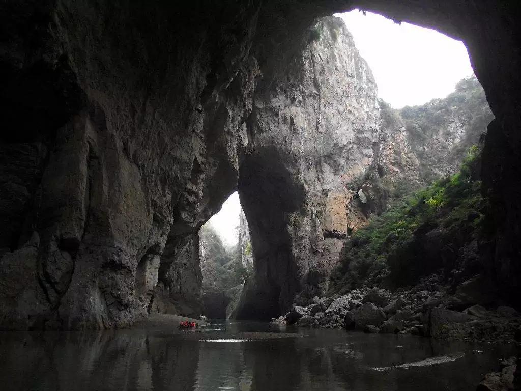 在這一段長約2公里的六沖河河道上,箱形切割頂板 多處塌陷,形成了多個形狀、大小各異的天窗、天坑,是已發現的天窗天坑最密集的溶洞群,是可供乘船游覽最高大的溶洞群。
