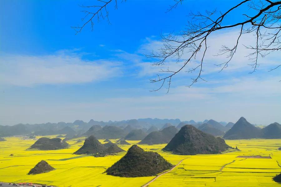 金雞峰在羅平縣城東北方,從羅平縣城沿324國道北東行12公里,有一處數不勝數的錐狀的小山叢,錯落有致地排列在壩子里,這就是金雞峰叢。金雞峰是拍攝羅平菜花大景的主要地點之一,在日出和日落時可以拍到非常漂亮的片片。