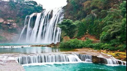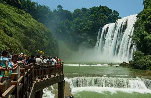 黃果樹大瀑布是亞洲最大的瀑布,奔騰的河水自70多米高的懸崖絕壁上飛流直瀉犀牛潭,發出震天巨響,如千人擊鼓,萬馬奔騰,聲似雷鳴,遠震數里之外,使來貴州旅游的游人驚心動魄。
