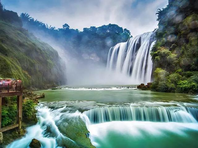 最后,游覽【黃果樹大瀑布】(游覽時間約2小時,注:景區內扶梯屬不必須消費項目,不含)黃果樹大瀑布寬101米,高77.8米是世界上唯一可以從上、下、前、后、左、右六個方位觀賞的瀑布,通過從瀑布后自然貫通的水簾洞能從洞內外聽、觀、摸瀑布。