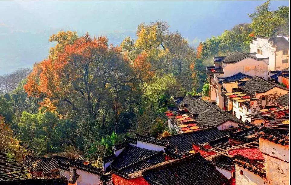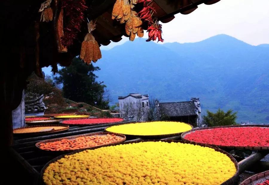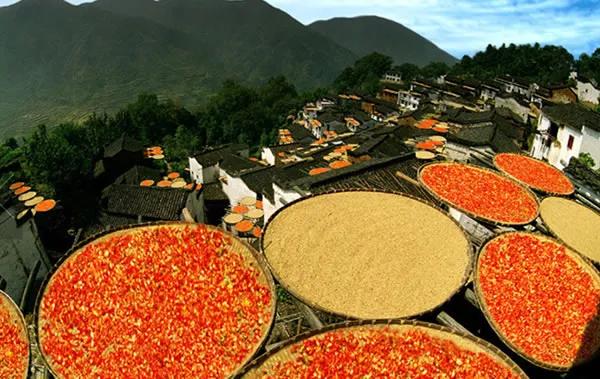 篁嶺的秋天不是北方漫天遍野的金黃,而是晾曬在屋頂?shù)娜宋那锷?