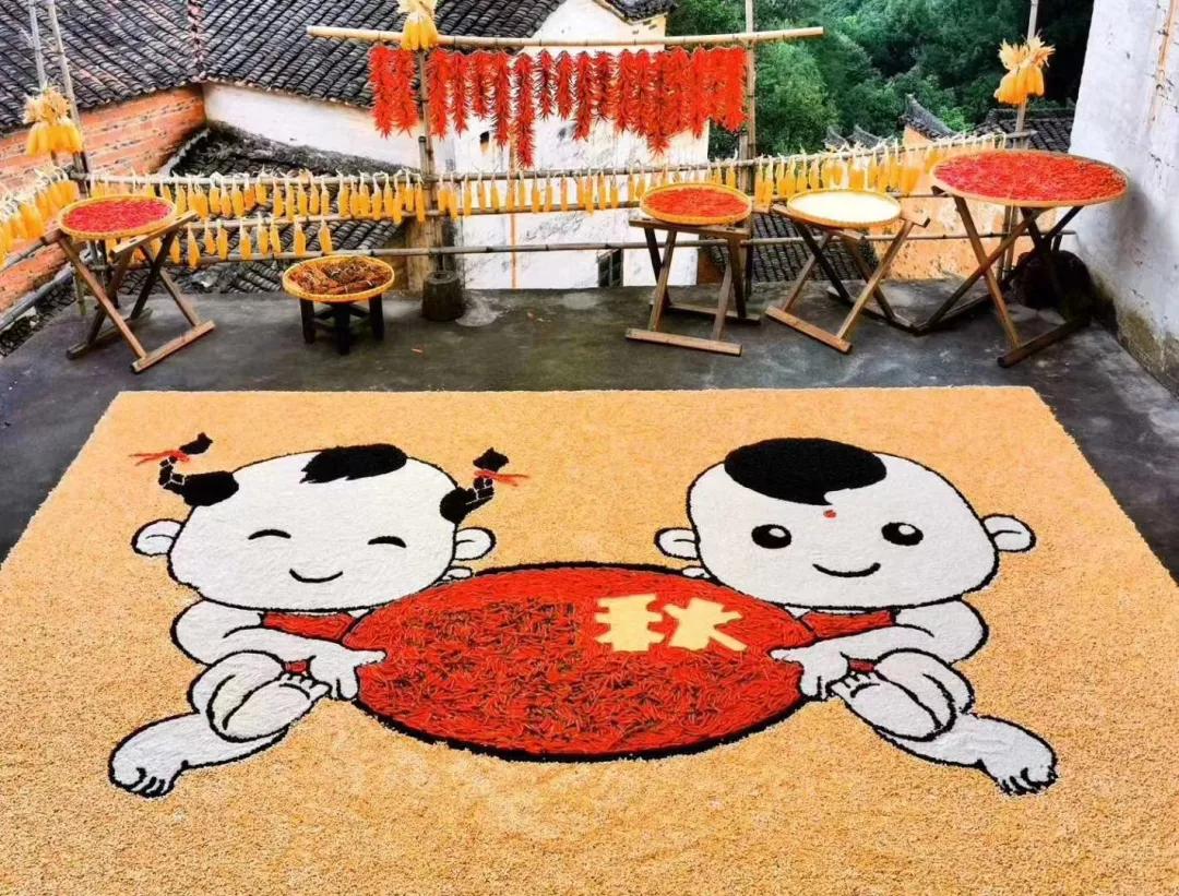 到了秋天在滿天的晴空下,卻多出了一道別樣的風景——篁嶺曬秋。