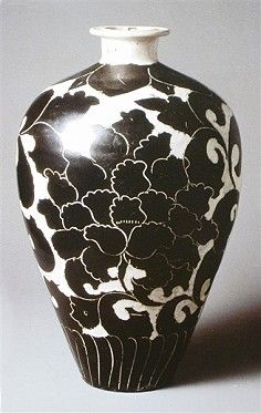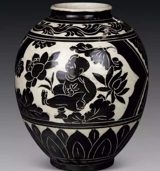 磁州窯的匠師們吸收了傳統的水墨畫和書法藝術的技法,創造了具有水墨畫風的白地黑繪裝飾藝術,開啟了中國瓷器彩繪裝飾的先河。