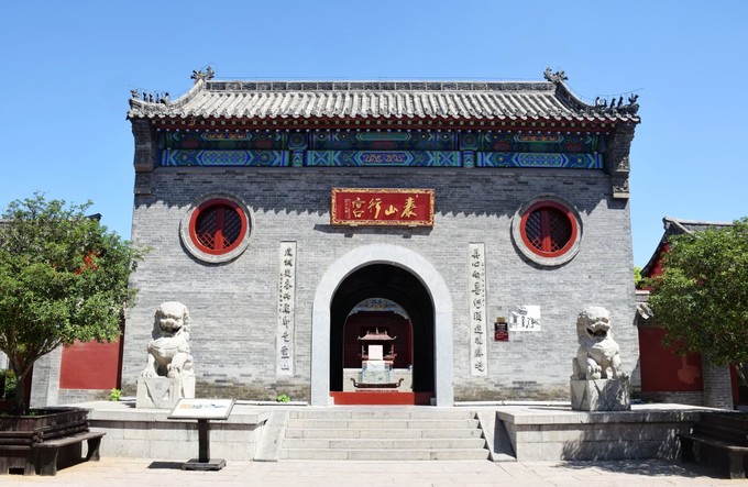 泰山行宮,俗稱泰山廟,始建于明代正德年間,毀于臺兒莊大戰。現泰山行宮為2011年原址復建,但仍保存有一處如來佛殿殿基遺址,保存較為完好,且建構考究。