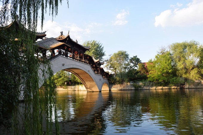 安瀾門,為一座城門式水閘,遠看與古運河似乎融為一體,如城門懸于河面。步云橋,為通往古運河中安瀾島上的一座仿古廊橋,如飛虹橫跨于古運河面。