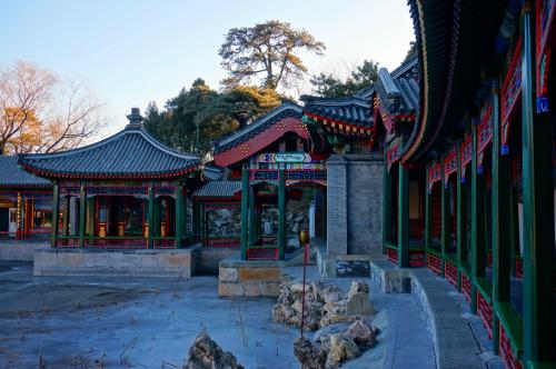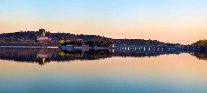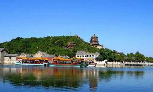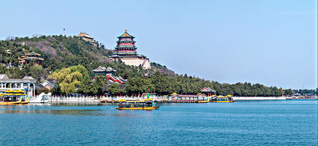山下是一條長(zhǎng)700多米的“長(zhǎng)廊”,長(zhǎng)廊枋梁上有彩畫(huà)8000多幅,號(hào)稱(chēng) “世界第一廊”。長(zhǎng)廊之前是昆明湖。昆明湖的西堤是仿照西湖的蘇堤建造的。萬(wàn)壽山后山、后湖古木成林,有藏式寺廟,蘇州河古買(mǎi)賣(mài)街。后湖東端有仿無(wú)錫寄暢園而建的諧趣園,小巧玲瓏,被稱(chēng)為“園中之園”。