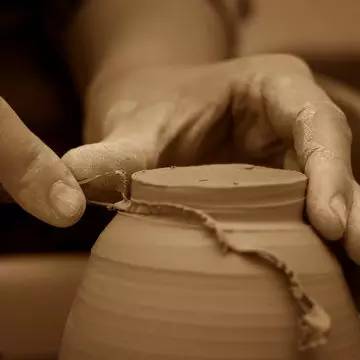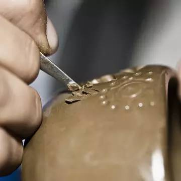 歷經(jīng)了揉泥、拉胚、晾胚、修胚、雕刻、素?zé)⒍啻问┯浴⒂詿⒒鹫铡㈤_窯等幾十道工序和數(shù)十個技術(shù)環(huán)節(jié)點。