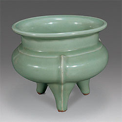 弟窯:突出一個“青”字,產(chǎn)生了“粉青”“梅子青”瓷器,稱為“弟窯”,這類青瓷釉色渾厚華滋、潤如凝脂、青如美玉,釉面無紋片;