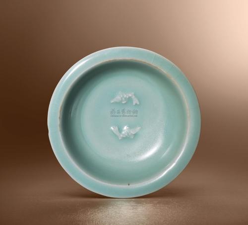 粉青色正是鐵還原的標準色。由于釉藥下注,往往在轉折部分釉藥較薄,露出白色胎骨,成一條白線,即就是所謂的“出筋”;這種出筋,也往往出現(xiàn)在凸雕的花紋上。弟窯還有翠青色,濃淡不一;豆綠色,顏色與汝窯器大致相同,往往不易分辨。